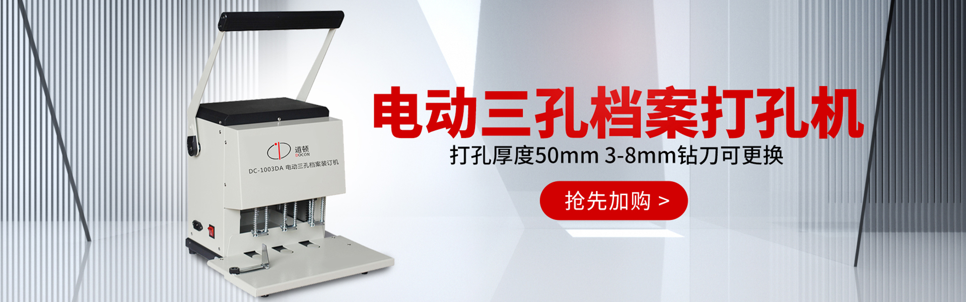三孔檔案打孔裝訂機分為手動和電動,一次可打三孔,型號多樣,裝訂形式為將打過孔的文件棉線裝訂、檔案盒裝訂、檔案夾裝訂等,標準83mm孔距,滿足政府機關(guān)單位檔案文件裝訂標準。